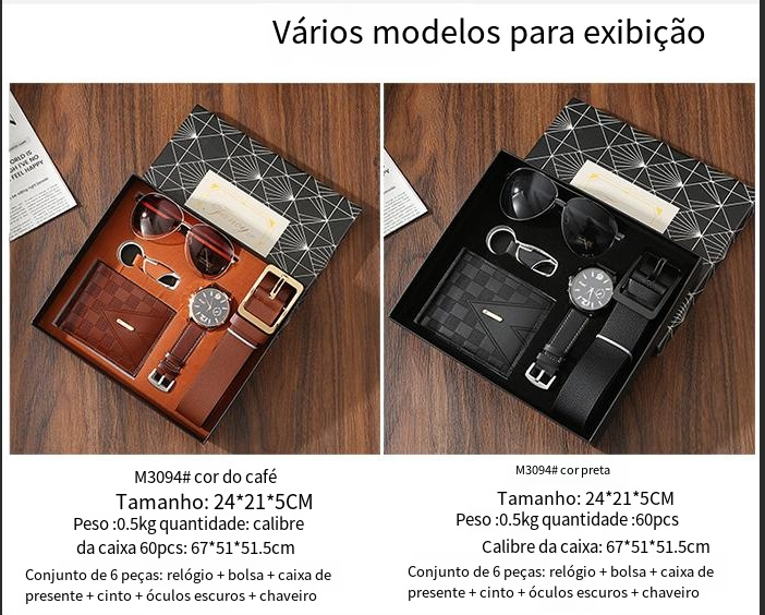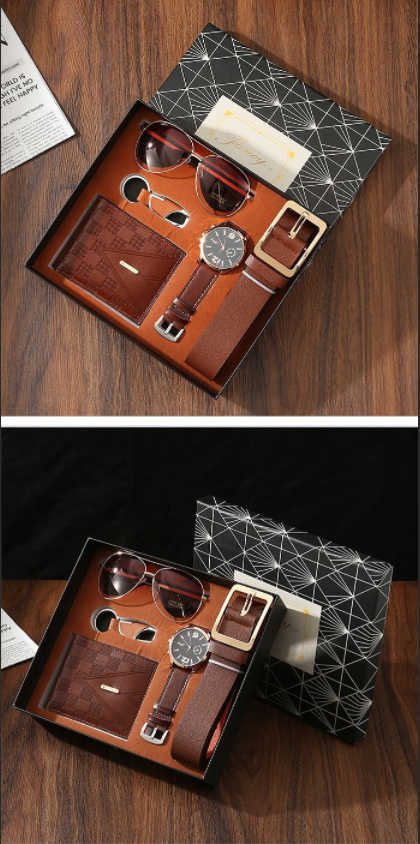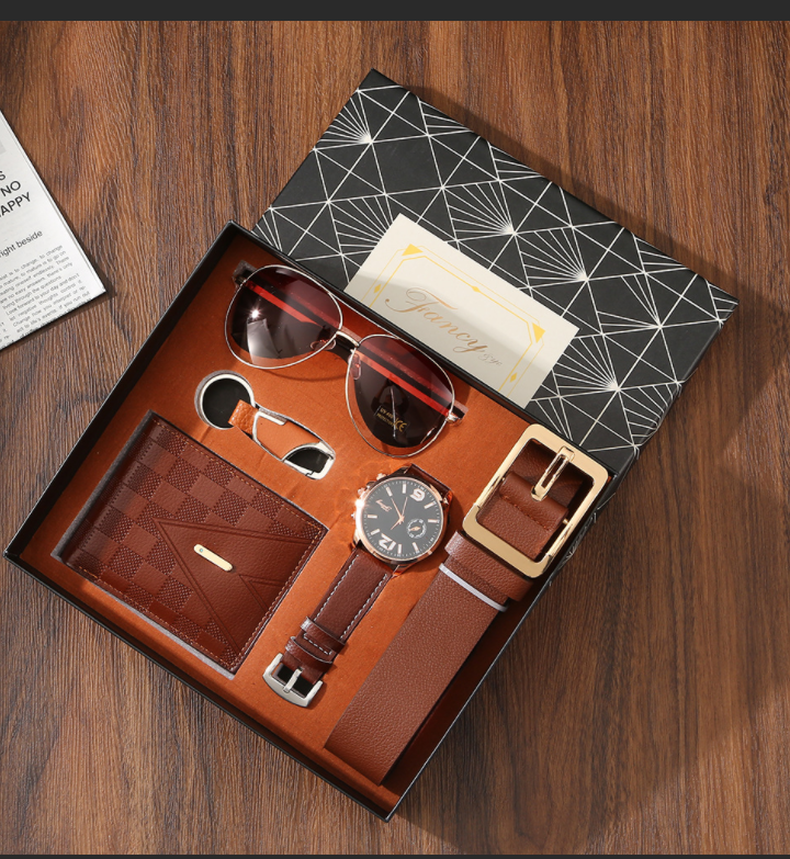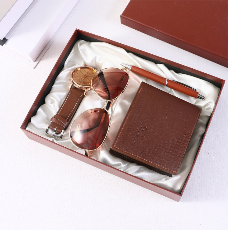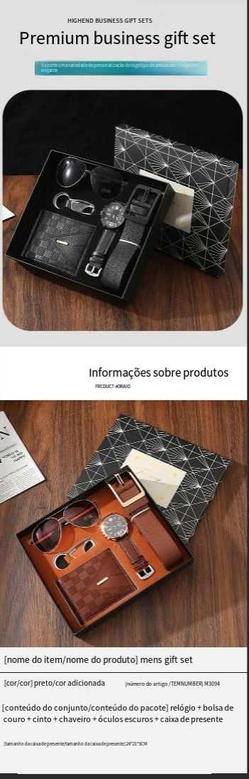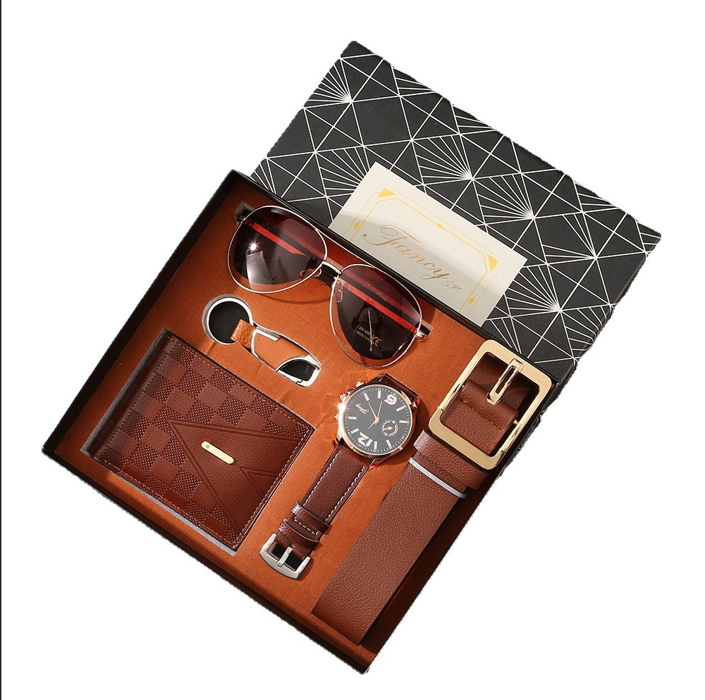 Crossover gift set mens carteiras cintos relógios de quartzo óculos escuros acompanhante mão presente