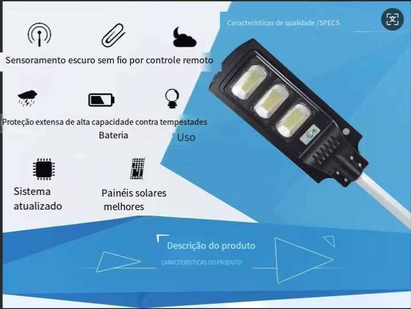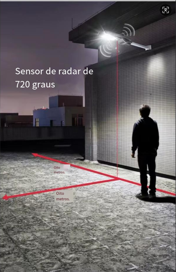 Luz de rua solar sem fio tudo em um controle remoto de radar luz impermeável luz de sensor de pátio