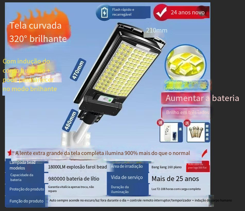 Luz de rua solar controle remoto à prova d'água luz de sensor de pátio